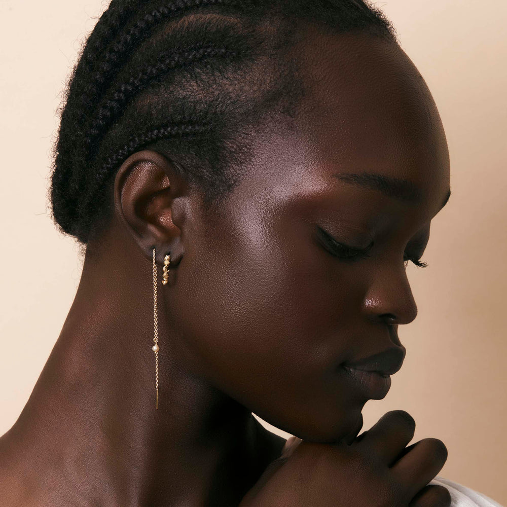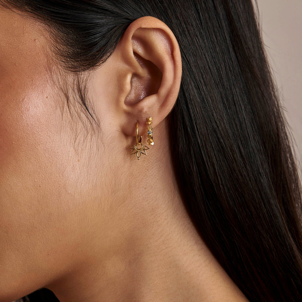 Midsummer Star Huggie earrings are a popular style of hoop earrings that have become increasingly popular in recent years. These earrings are known for their small size and their ability to "hug" the earlobe closely, creating a minimalist and understated look.