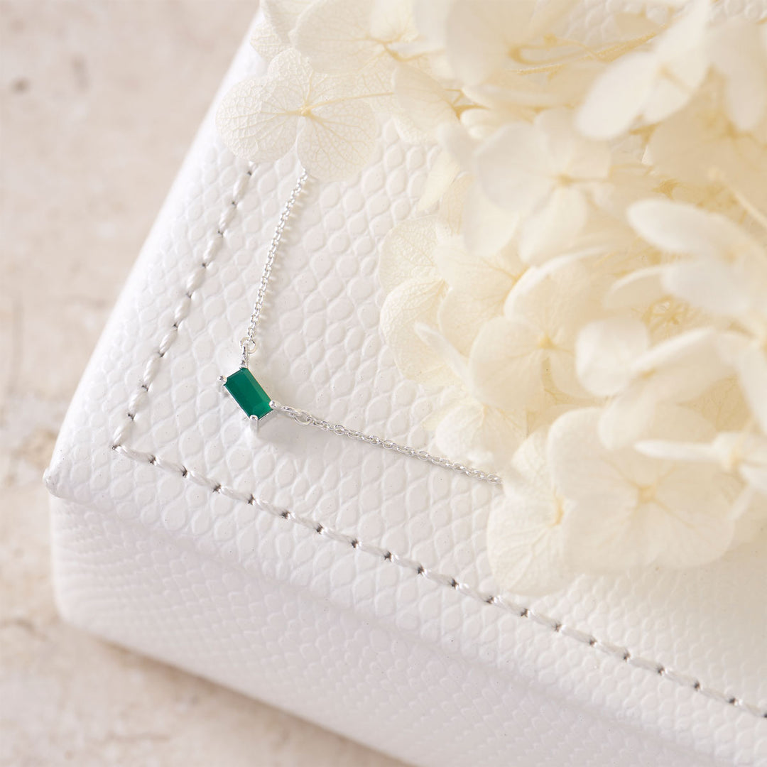 Sterling Silver Lumen Baguette Green Onyx Necklace